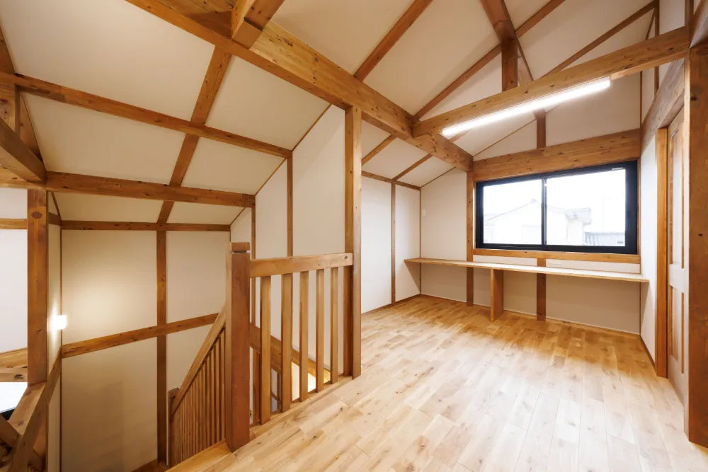 さらに2階にも勾配天井を利用した納戸があり家全体の収納力はバツグンです。